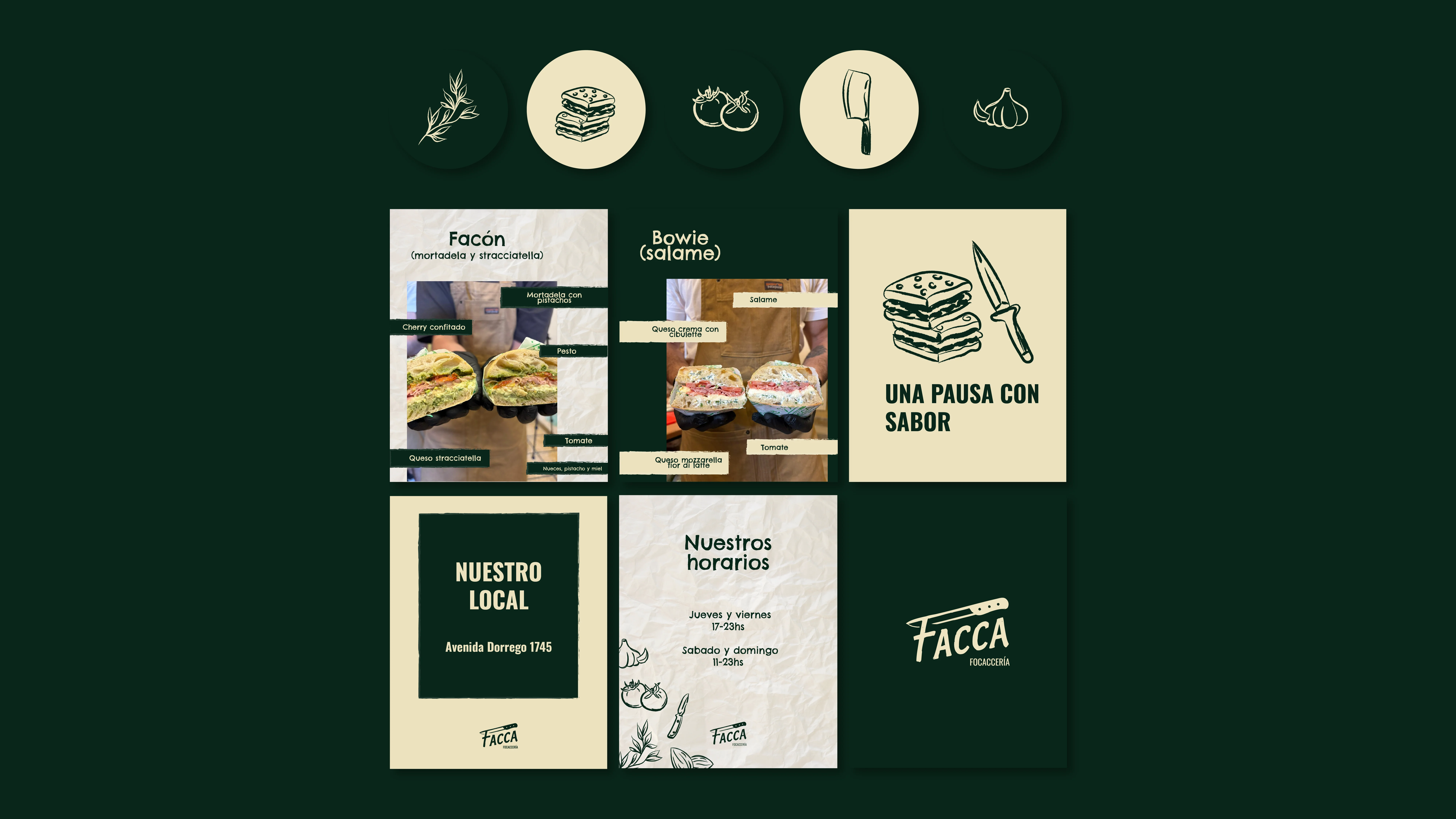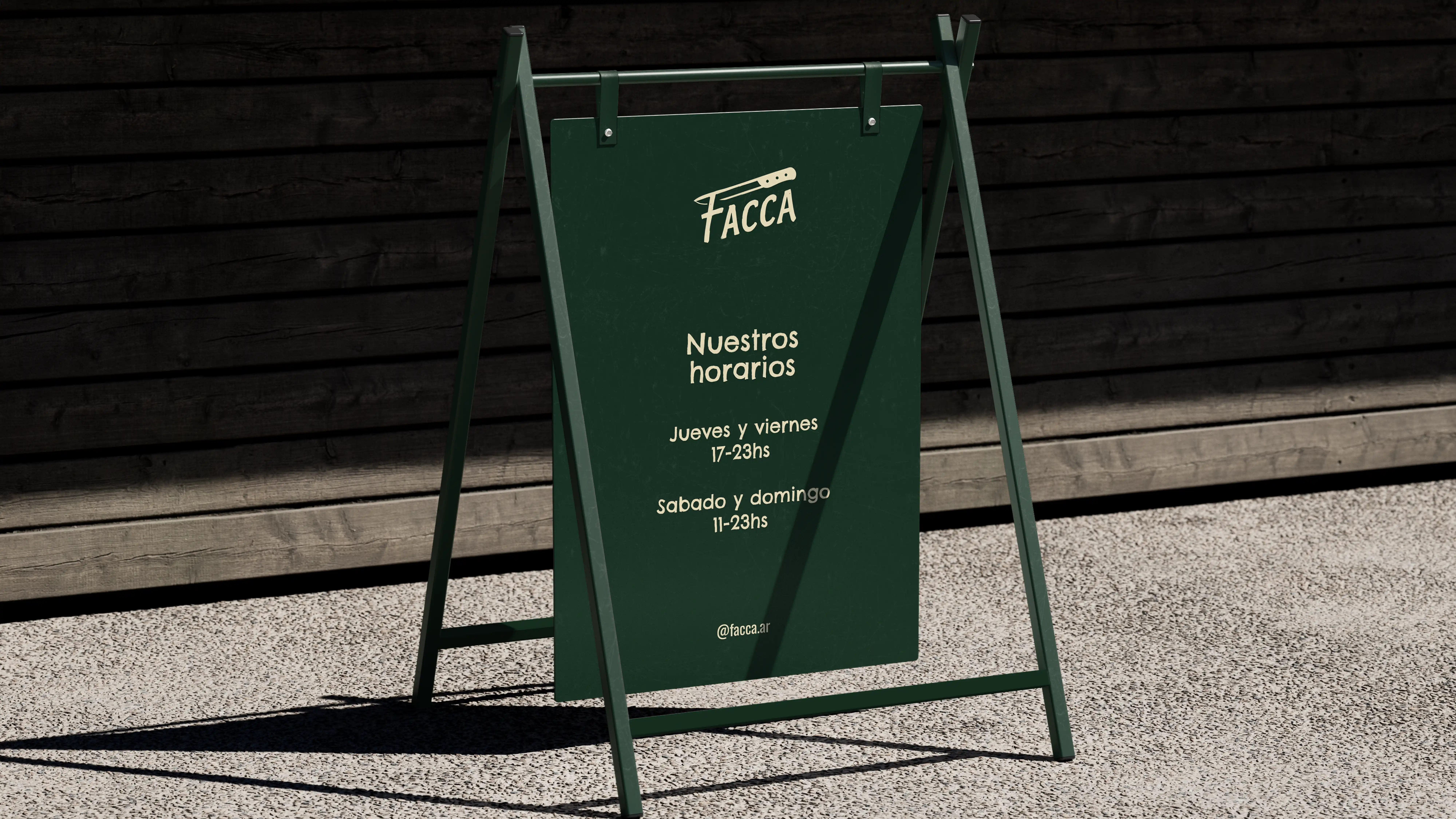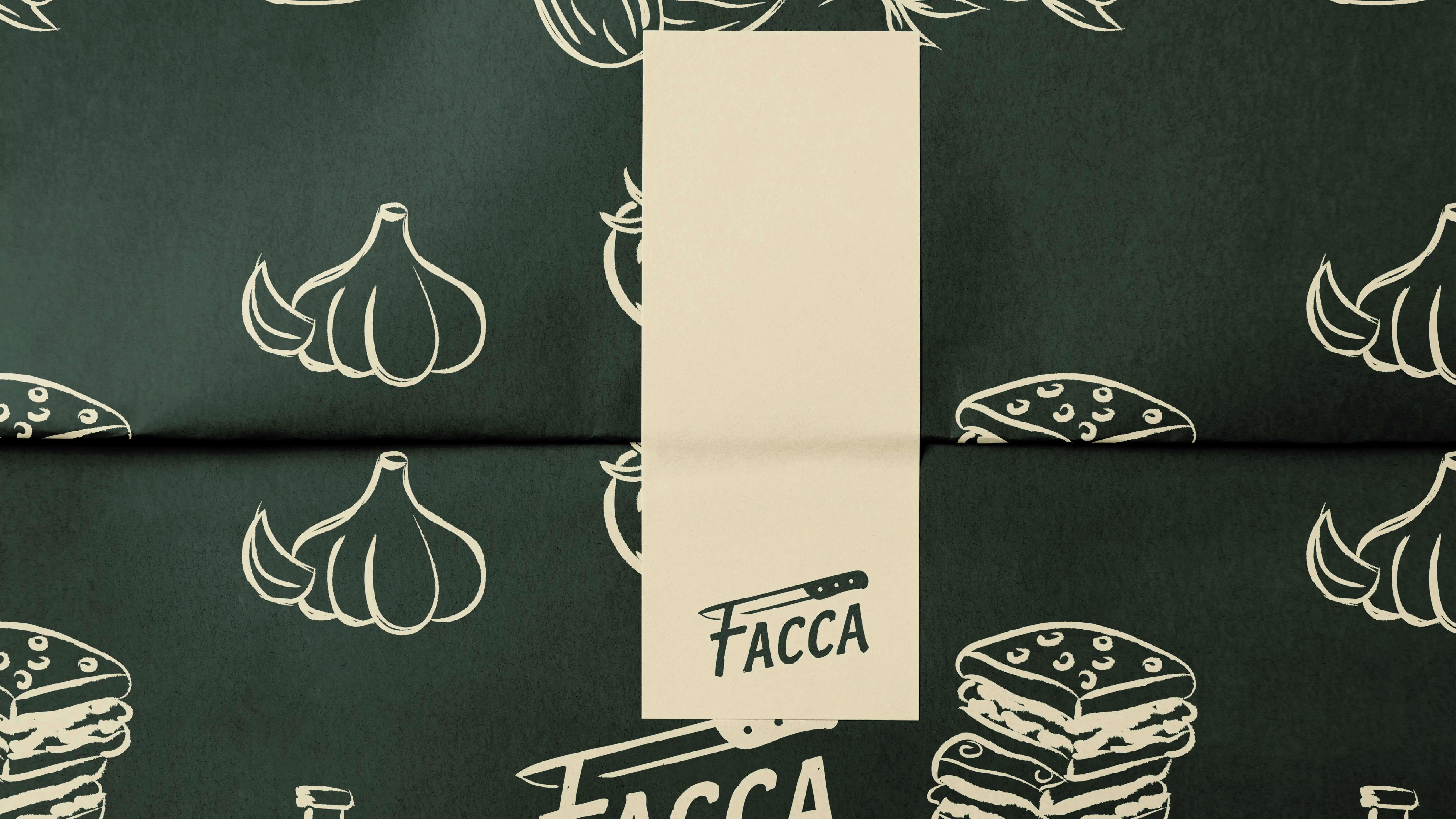 Facca nació como un lugar para juntarse. Un garage, amigos, charlas largas y ganas de compartir algo simple. El diseño acompaña ese espíritu: colores cálidos, tipografías con carácter y una estética rústica y minimalista que se siente honesta y real. Una marca pensada para invitar a quedarse, a compartir una focaccia, una cerveza y un buen momento.
